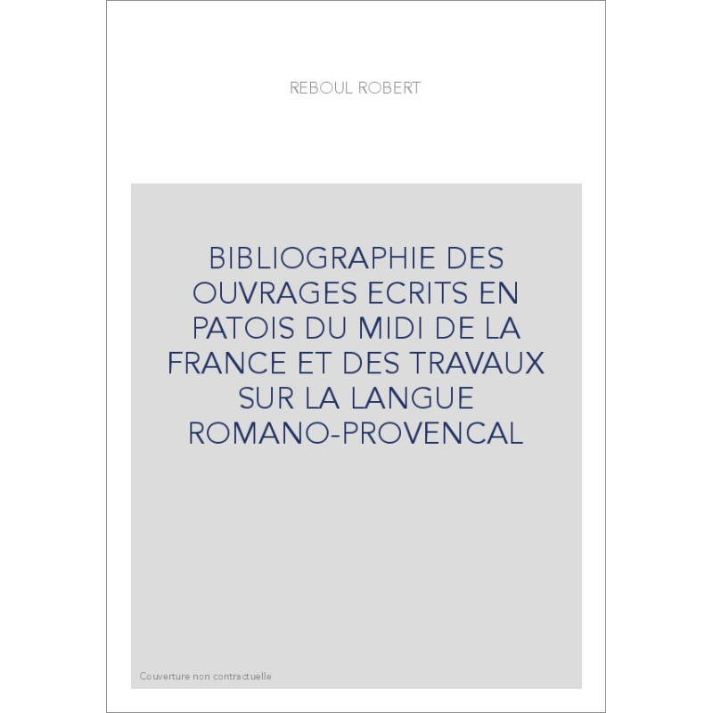 BIBLIOGRAPHIE DES OUVRAGES ECRITS EN PATOIS DU MIDI DE LA FRANCE ET DES TRAVAUX SUR LA LANGUE ROMANO-PROVENCAL