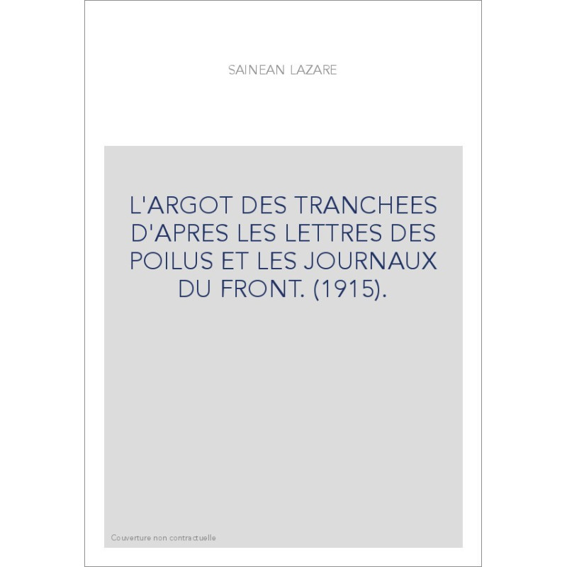 L'ARGOT DES TRANCHEES D'APRES LES LETTRES DES POILUS ET LES JOURNAUX DU FRONT. (1915).