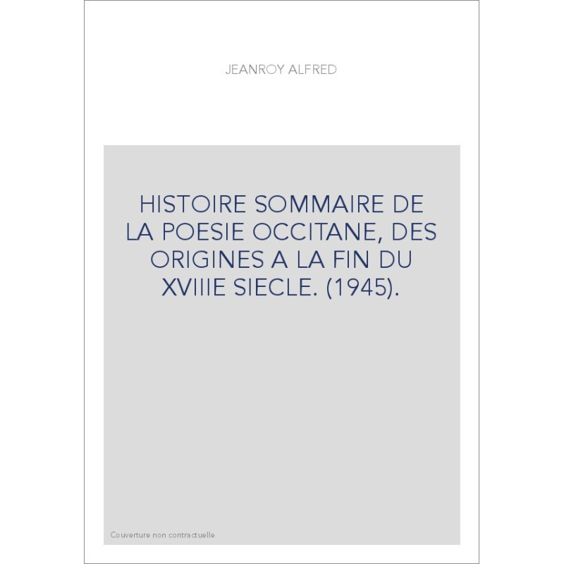 HISTOIRE SOMMAIRE DE LA POESIE OCCITANE, DES ORIGINES A LA FIN DU XVIIIE SIECLE. (1945).