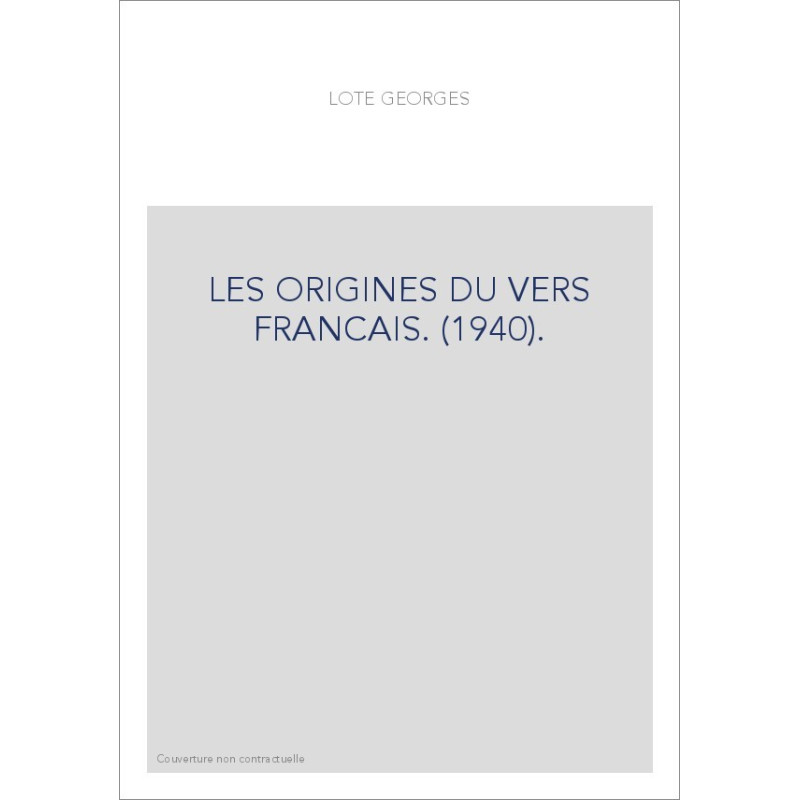 LES ORIGINES DU VERS FRANCAIS. (1940).