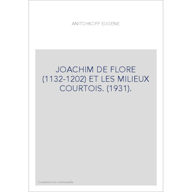 JOACHIM DE FLORE (1132-1202) ET LES MILIEUX COURTOIS. (1931).