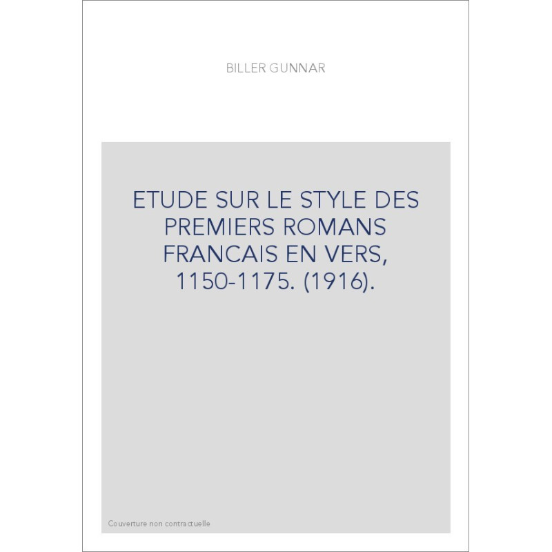 ETUDE SUR LE STYLE DES PREMIERS ROMANS FRANCAIS EN VERS, 1150-1175. (1916).