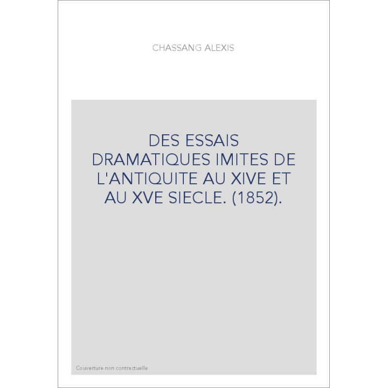 DES ESSAIS DRAMATIQUES IMITES DE L'ANTIQUITE AU XIVE ET AU XVE SIECLE. (1852).