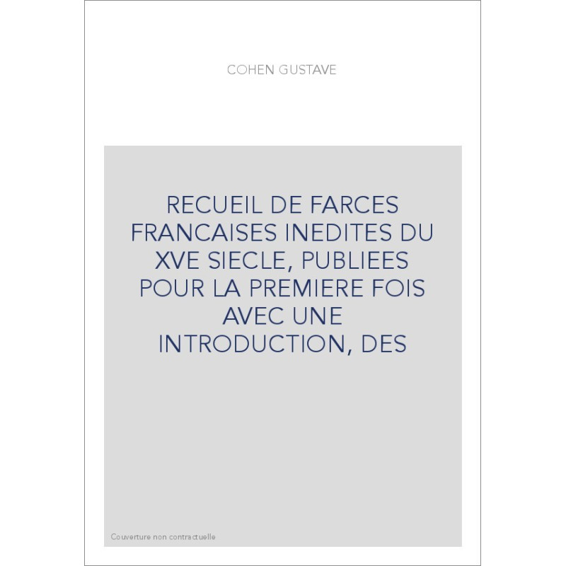 RECUEIL DE FARCES FRANCAISES INEDITES DU XVE SIECLE, PUBLIEES POUR LA PREMIERE FOIS AVEC UNE INTRODUCTION, DES
