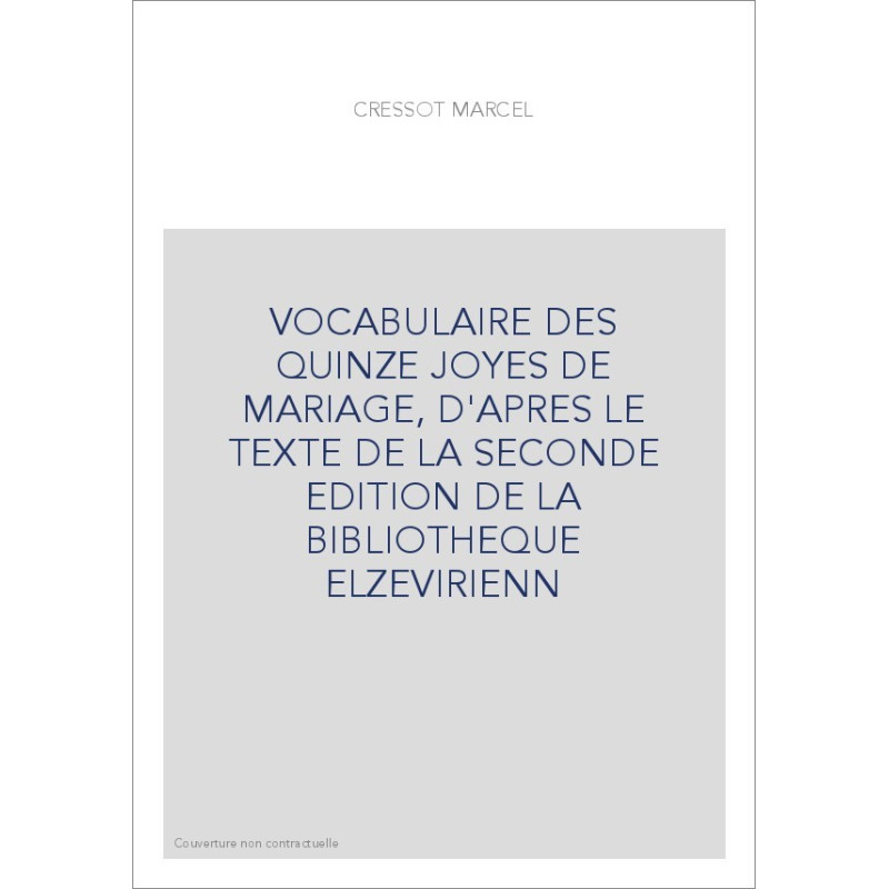 VOCABULAIRE DES QUINZE JOYES DE MARIAGE, D'APRES LE TEXTE DE LA SECONDE EDITION DE LA BIBLIOTHEQUE ELZEVIRIENN