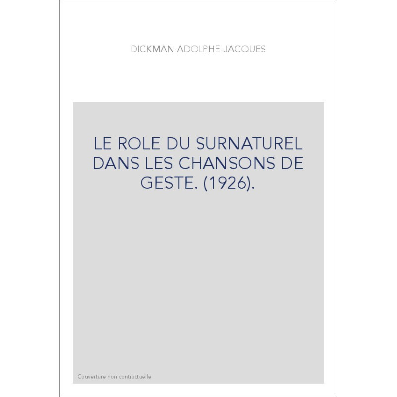 LE ROLE DU SURNATUREL DANS LES CHANSONS DE GESTE. (1926).