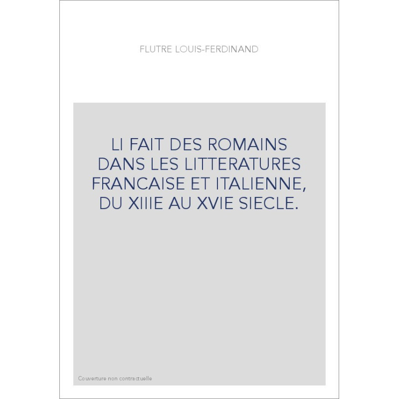 LI FAIT DES ROMAINS DANS LES LITTERATURES FRANCAISE ET ITALIENNE, DU XIIIE AU XVIE SIECLE.