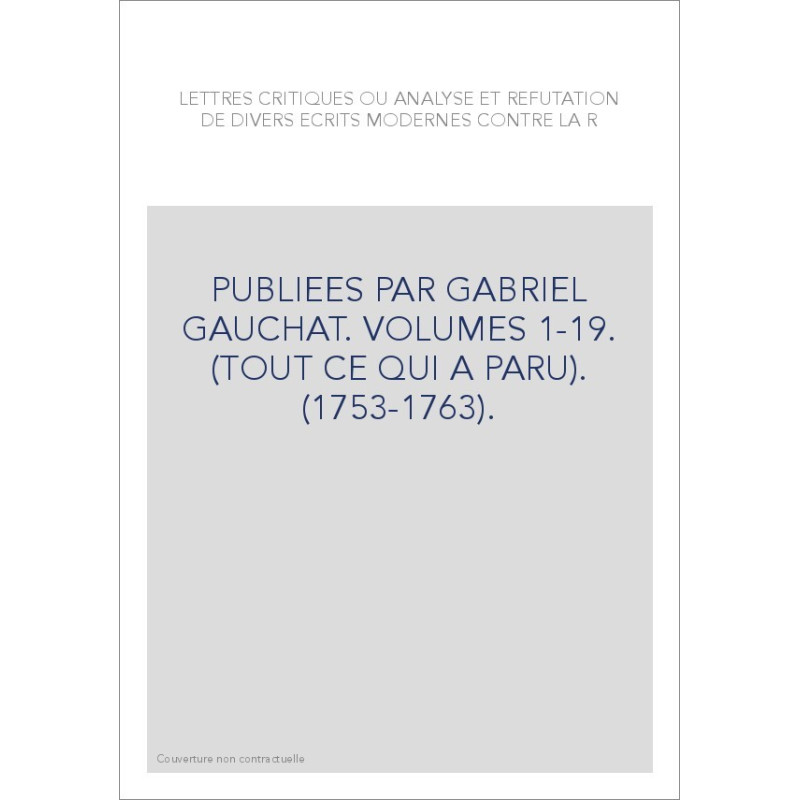 LETTRES CRITIQUES OU ANALYSE ET REFUTATION DE DIVERS ECRITS MODERNES CONTRE LA RELIGION.