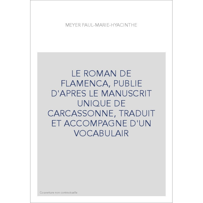 LE ROMAN DE FLAMENCA, PUBLIE D'APRES LE MANUSCRIT UNIQUE DE CARCASSONNE, TRADUIT ET ACCOMPAGNE D'UN VOCABULAIR