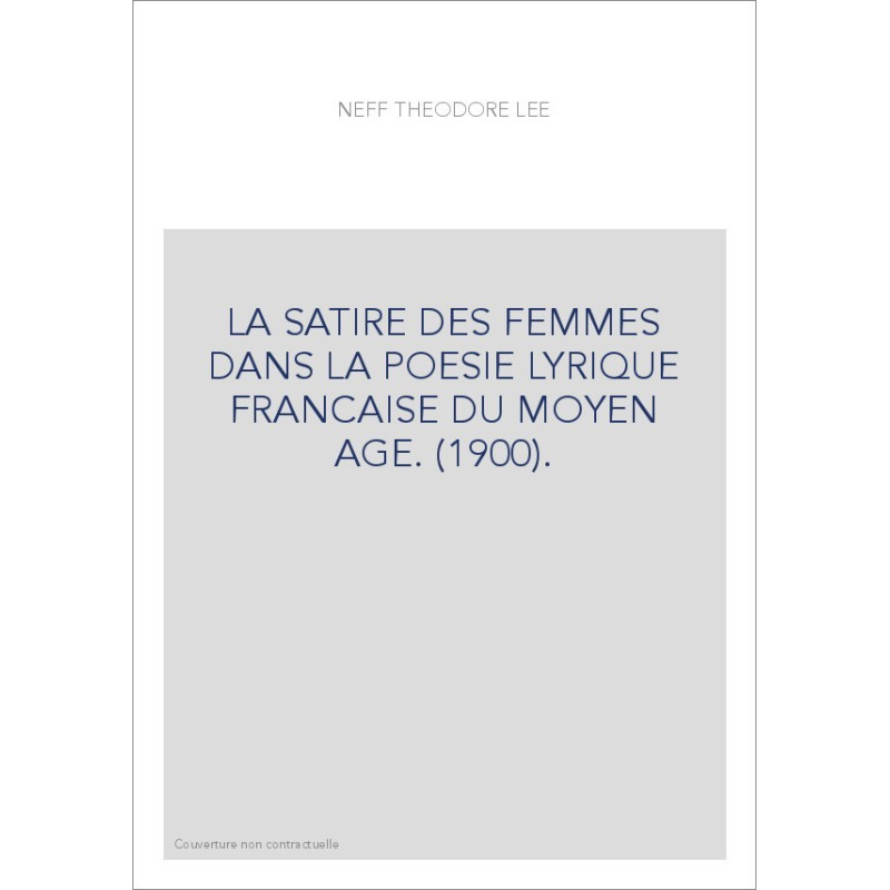 LA SATIRE DES FEMMES DANS LA POESIE LYRIQUE FRANCAISE DU MOYEN AGE. (1900).