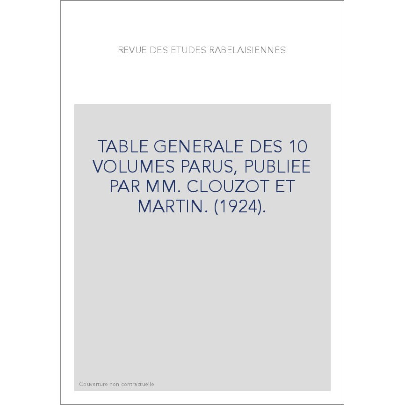 TABLE GENERALE DES 10 VOLUMES PARUS, PUBLIEE PAR MM. CLOUZOT ET MARTIN. (1924).