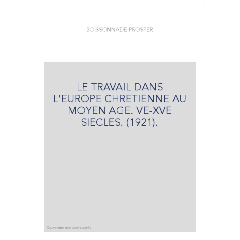 LE TRAVAIL DANS L'EUROPE CHRETIENNE AU MOYEN AGE. VE-XVE SIECLES. (1921).