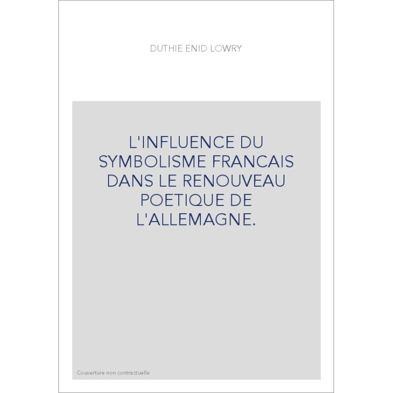 L'INFLUENCE DU SYMBOLISME FRANCAIS DANS LE RENOUVEAU POETIQUE DE L'ALLEMAGNE.