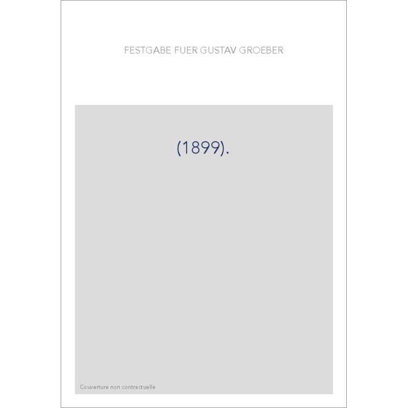 FESTGABE FUR GUSTAV GROEBER. (1899).