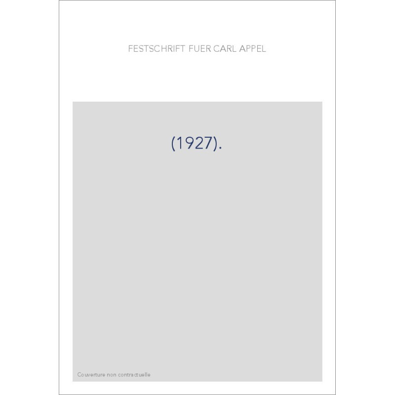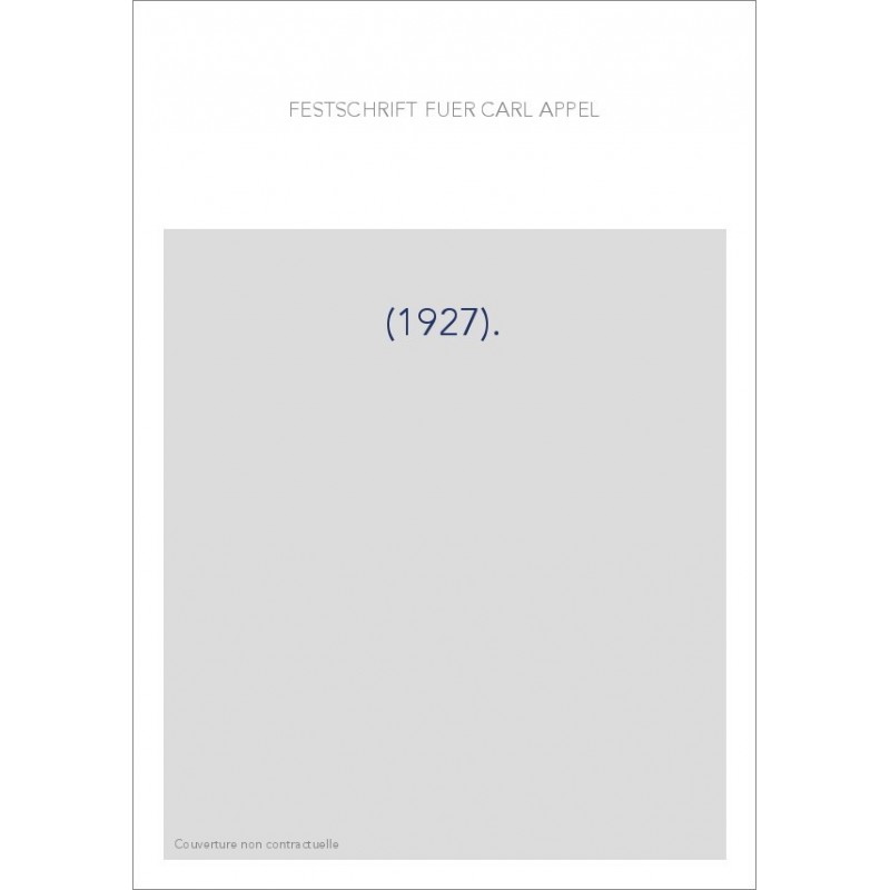 FESTSCHRIFT FUR CARL APPEL. (1927).