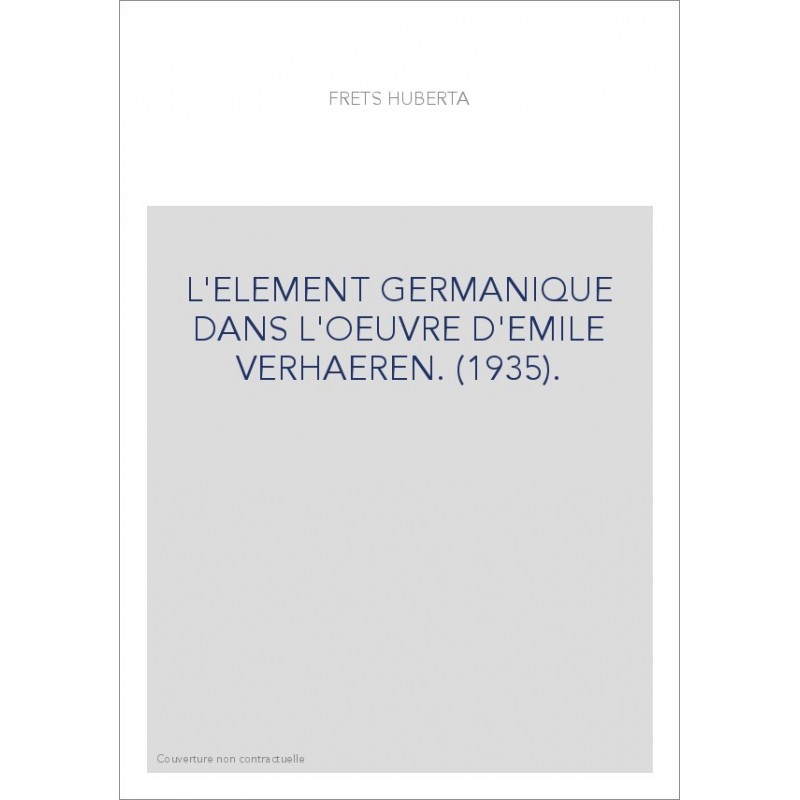L'ELEMENT GERMANIQUE DANS L'OEUVRE D'EMILE VERHAEREN. (1935).