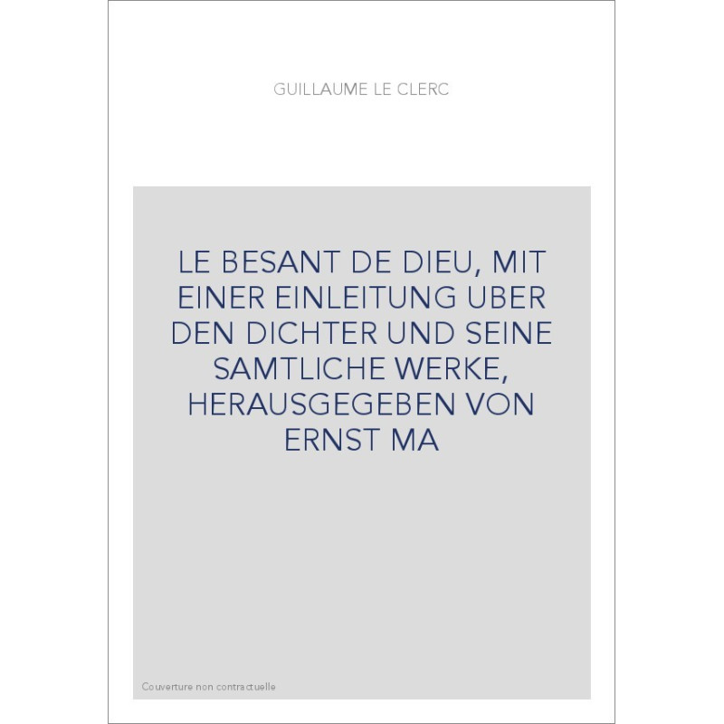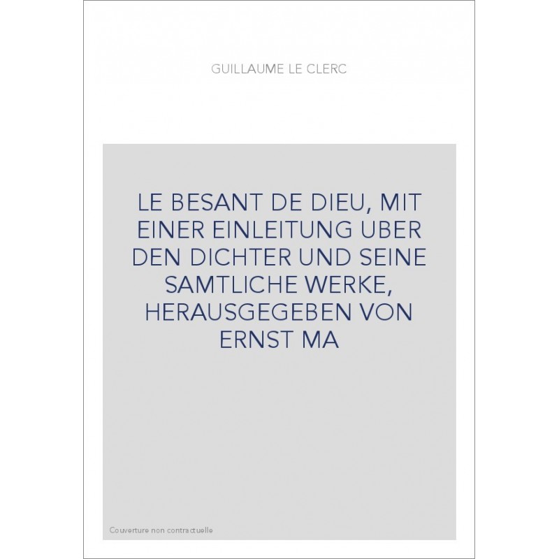 LE BESANT DE DIEU, MIT EINER EINLEITUNG UBER DEN DICHTER UND SEINE SAMTLICHE WERKE, HERAUSGEGEBEN VON ERNST MA