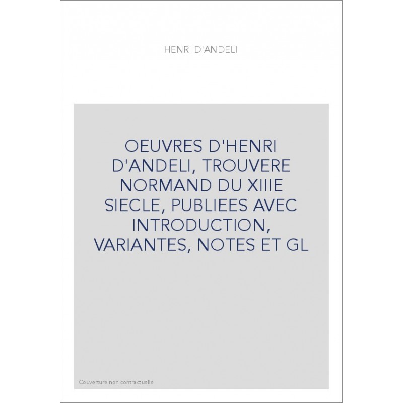 OEUVRES D'HENRI D'ANDELI, TROUVERE NORMAND DU XIIIE SIECLE, PUBLIEES AVEC INTRODUCTION, VARIANTES, NOTES ET GL