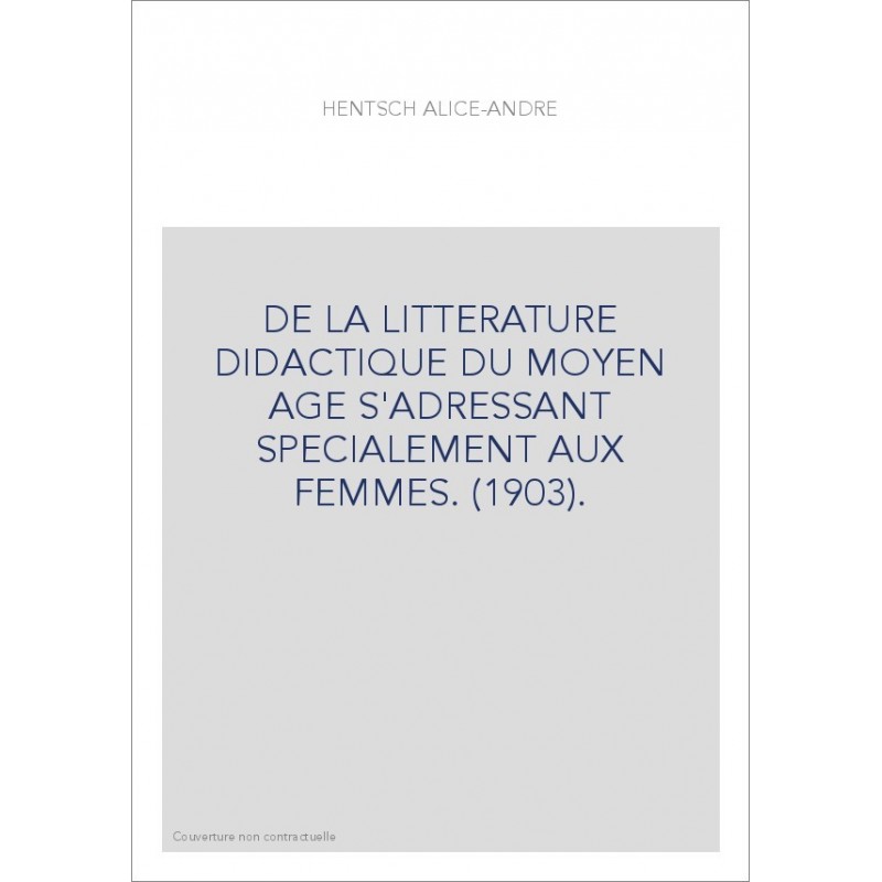 DE LA LITTERATURE DIDACTIQUE DU MOYEN AGE S'ADRESSANT SPECIALEMENT AUX FEMMES. (1903).