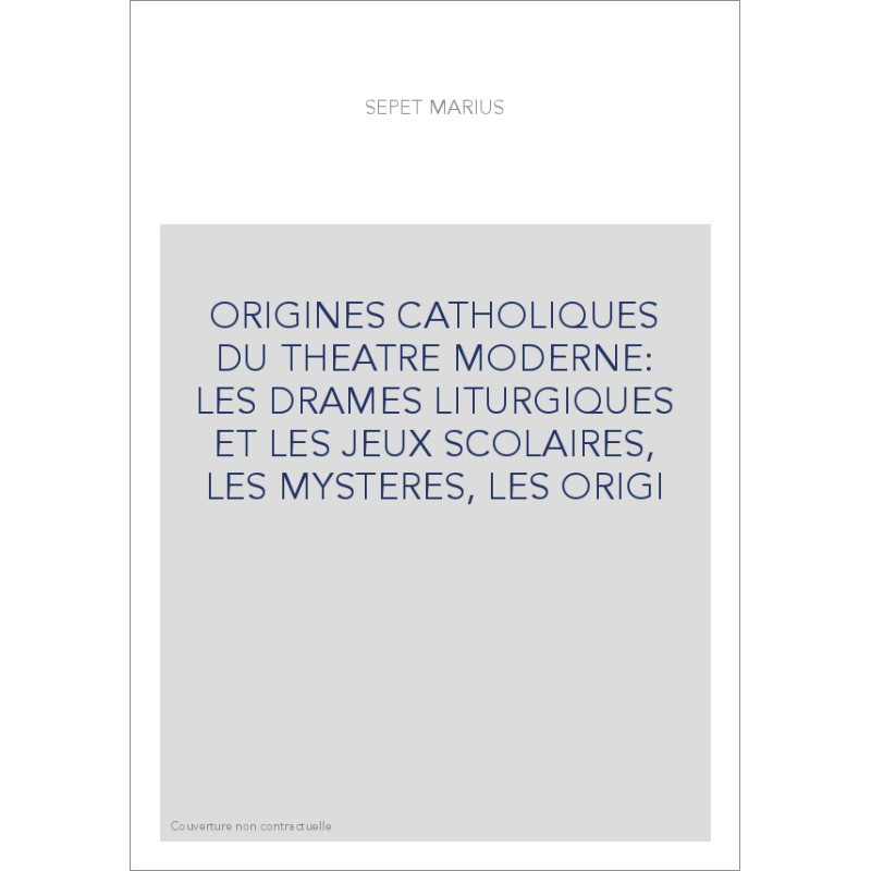 ORIGINES CATHOLIQUES DU THEATRE MODERNE: LES DRAMES LITURGIQUES ET LES JEUX SCOLAIRES, LES MYSTERES, LES ORIGI