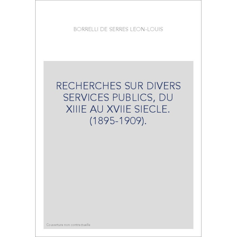 RECHERCHES SUR DIVERS SERVICES PUBLICS, DU XIIIE AU XVIIE SIECLE. (1895-1909).
