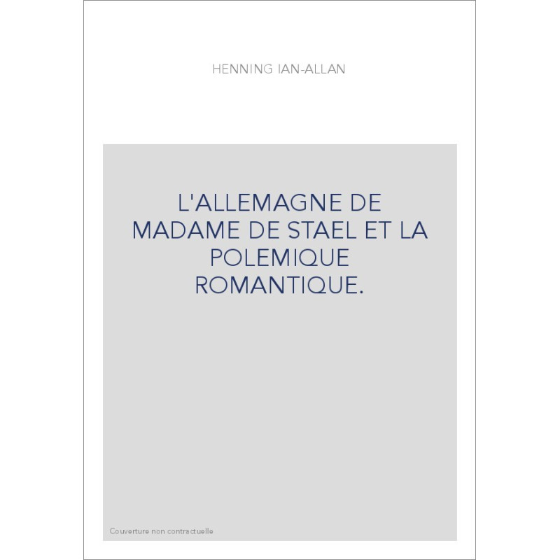 L'ALLEMAGNE DE MADAME DE STAEL ET LA POLEMIQUE ROMANTIQUE.