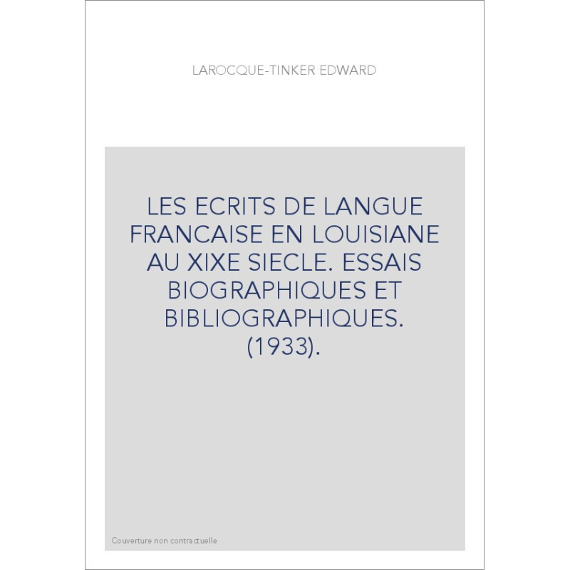 LES ECRITS DE LANGUE FRANCAISE EN LOUISIANE AU XIXE SIECLE. ESSAIS BIOGRAPHIQUES ET BIBLIOGRAPHIQUES. (1933).