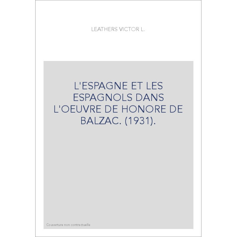 L'ESPAGNE ET LES ESPAGNOLS DANS L'OEUVRE DE HONORE DE BALZAC. (1931).