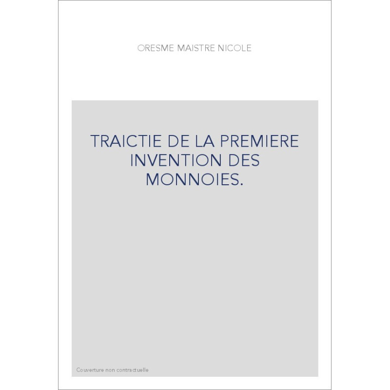 TRAICTIE DE LA PREMIERE INVENTION DES MONNOIES. TEXTES FRANCAIS ET LATIN, ET TRAITE DE LA MONNOIE DE COPERNIC