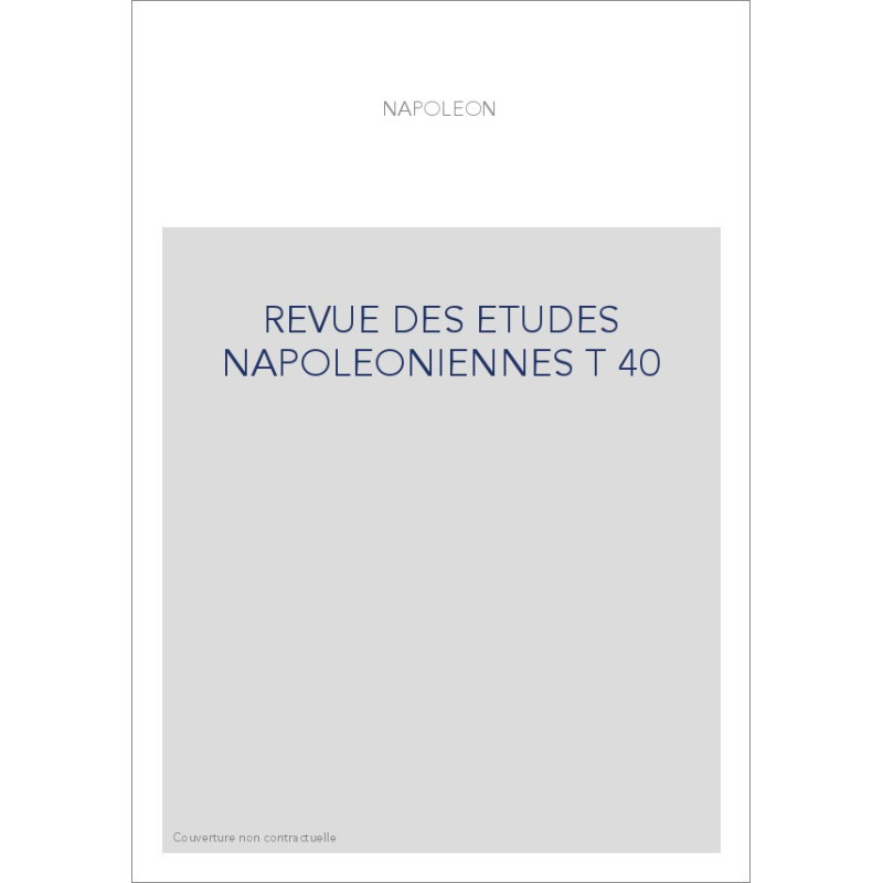 REVUE DES ETUDES NAPOLEONIENNES T 40