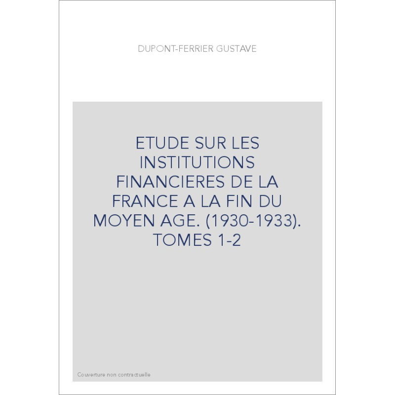 ETUDE SUR LES INSTITUTIONS FINANCIERES DE LA FRANCE A LA FIN DU MOYEN AGE. (1930-1933). TOMES 1-2