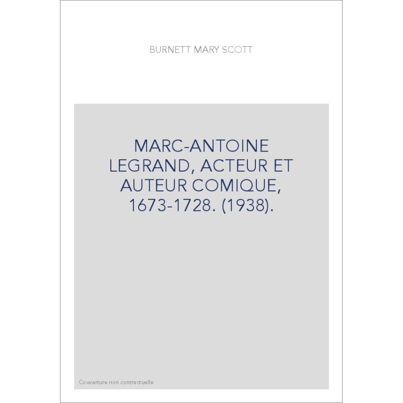 MARC-ANTOINE LEGRAND, ACTEUR ET AUTEUR COMIQUE, 1673-1728. (1938).