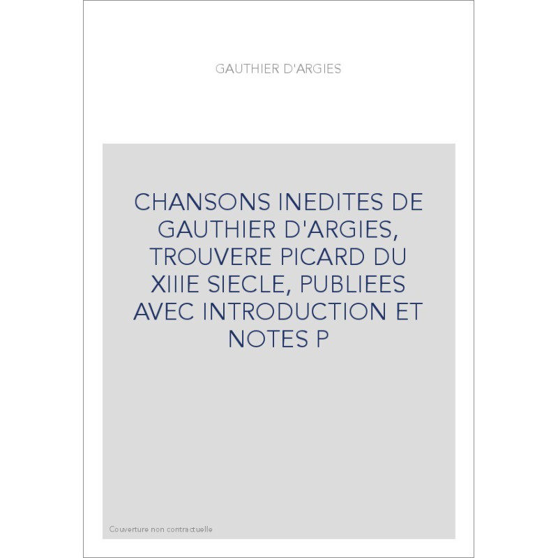 CHANSONS INEDITES DE GAUTHIER D'ARGIES, TROUVERE PICARD DU XIIIE SIECLE, PUBLIEES AVEC INTRODUCTION ET NOTES P