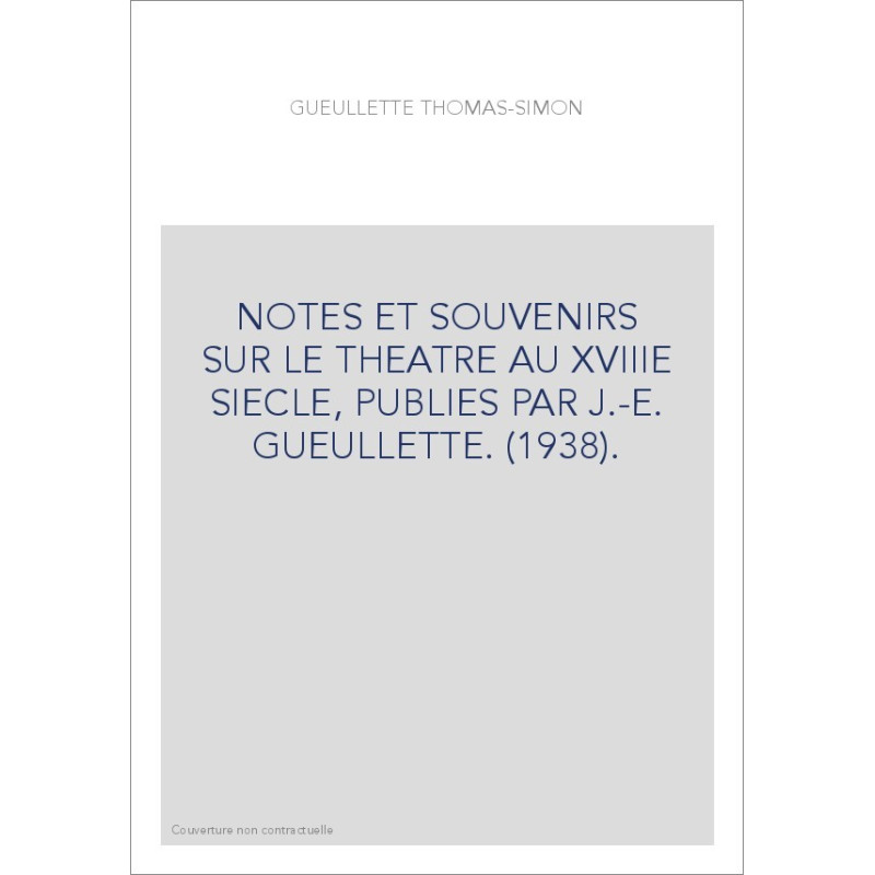 NOTES ET SOUVENIRS SUR LE THEATRE AU XVIIIE SIECLE, PUBLIES PAR J.-E. GUEULLETTE. (1938).