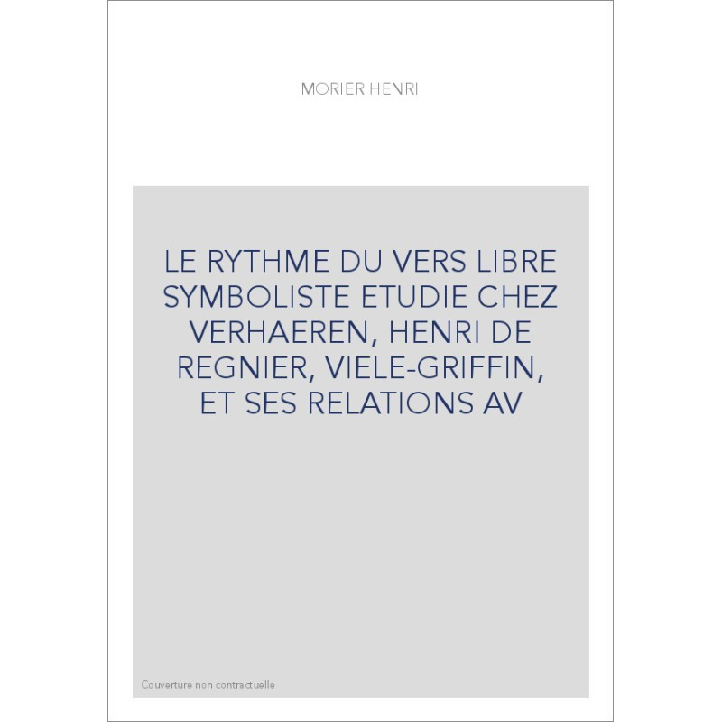 LE RYTHME DU VERS LIBRE SYMBOLISTE ETUDIE CHEZ VERHAEREN, HENRI DE REGNIER, VIELE-GRIFFIN, ET SES RELATIONS AV