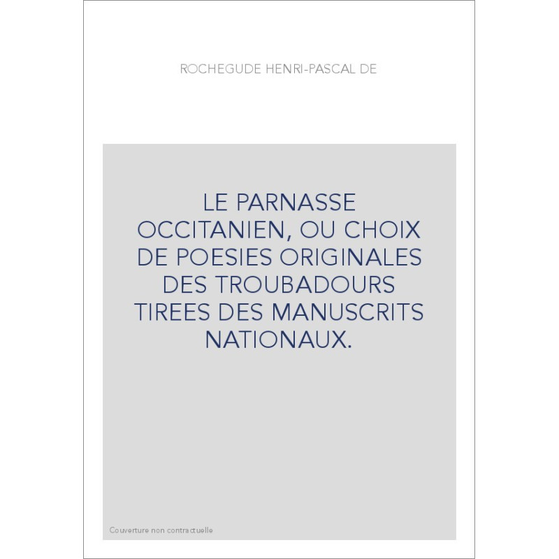 LE PARNASSE OCCITANIEN, OU CHOIX DE POESIES ORIGINALES DES TROUBADOURS TIREES DES MANUSCRITS NATIONAUX.