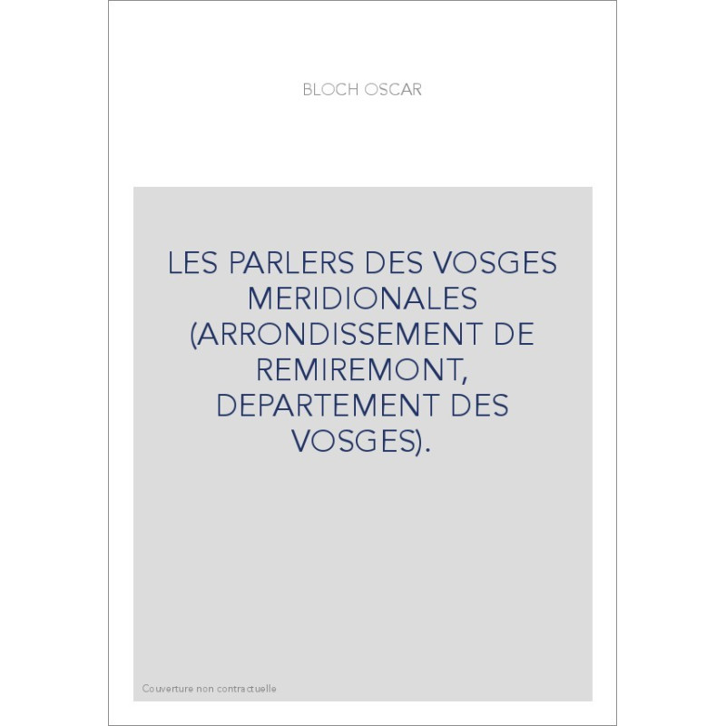 LES PARLERS DES VOSGES MERIDIONALES (ARRONDISSEMENT DE REMIREMONT, DEPARTEMENT DES VOSGES).