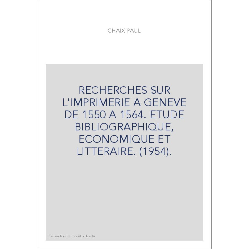 RECHERCHES SUR L'IMPRIMERIE A GENEVE DE 1550 A 1564. ETUDE BIBLIOGRAPHIQUE, ECONOMIQUE ET LITTERAIRE. (1954).