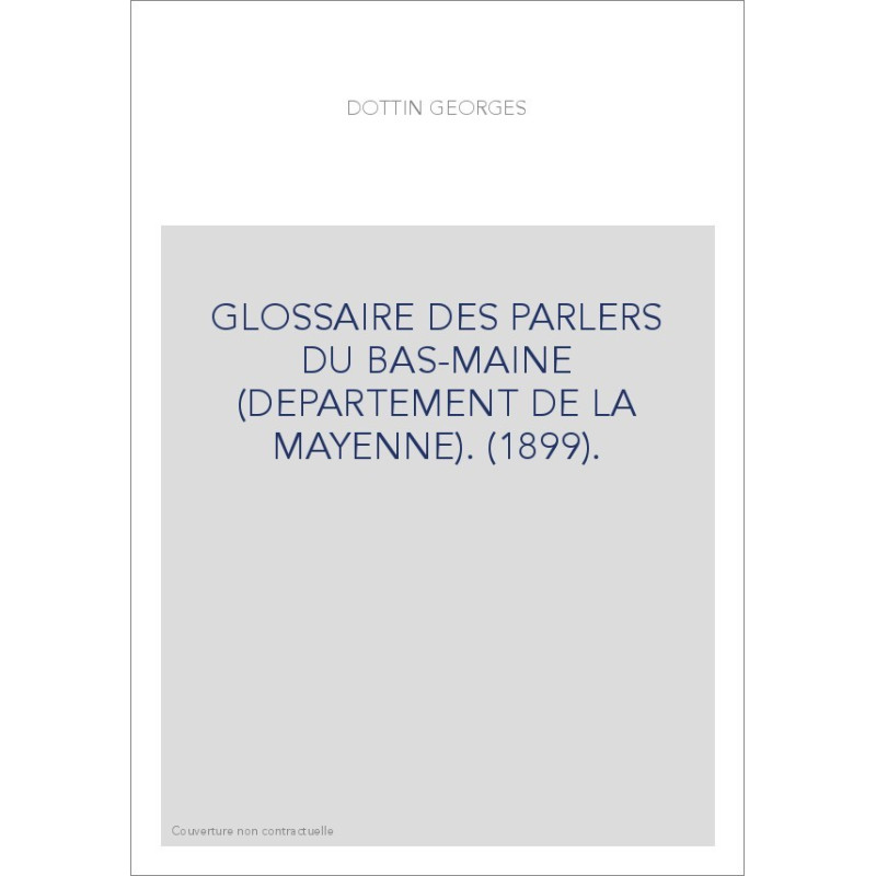 GLOSSAIRE DES PARLERS DU BAS-MAINE (DEPARTEMENT DE LA MAYENNE). (1899).