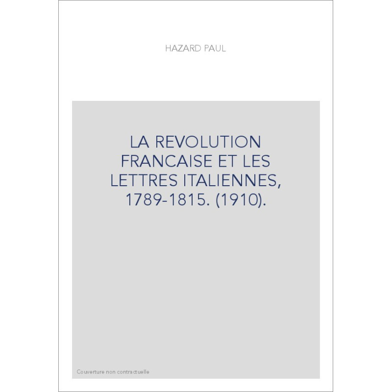 LA REVOLUTION FRANCAISE ET LES LETTRES ITALIENNES, 1789-1815. (1910).