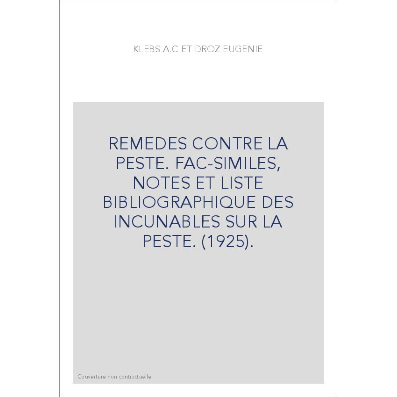 REMEDES CONTRE LA PESTE. FAC-SIMILES, NOTES ET LISTE BIBLIOGRAPHIQUE DES INCUNABLES SUR LA PESTE. (1925).