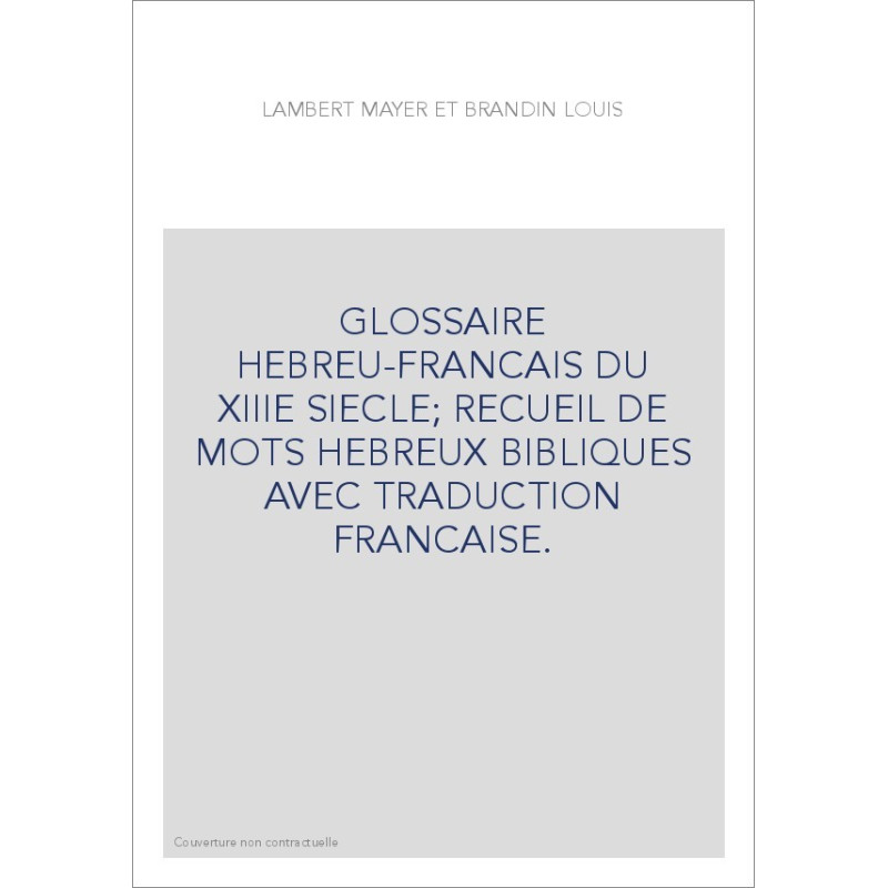 GLOSSAIRE HEBREU-FRANCAIS DU XIIIE SIECLE RECUEIL DE MOTS HEBREUX BIBLIQUES AVEC TRADUCTION FRANCAISE.
