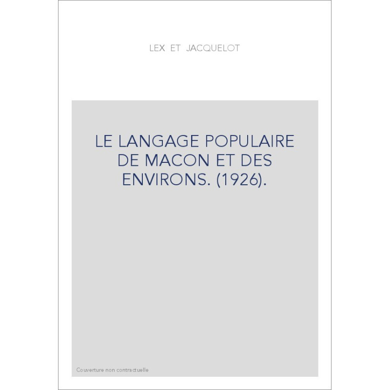 LE LANGAGE POPULAIRE DE MACON ET DES ENVIRONS. (1926).