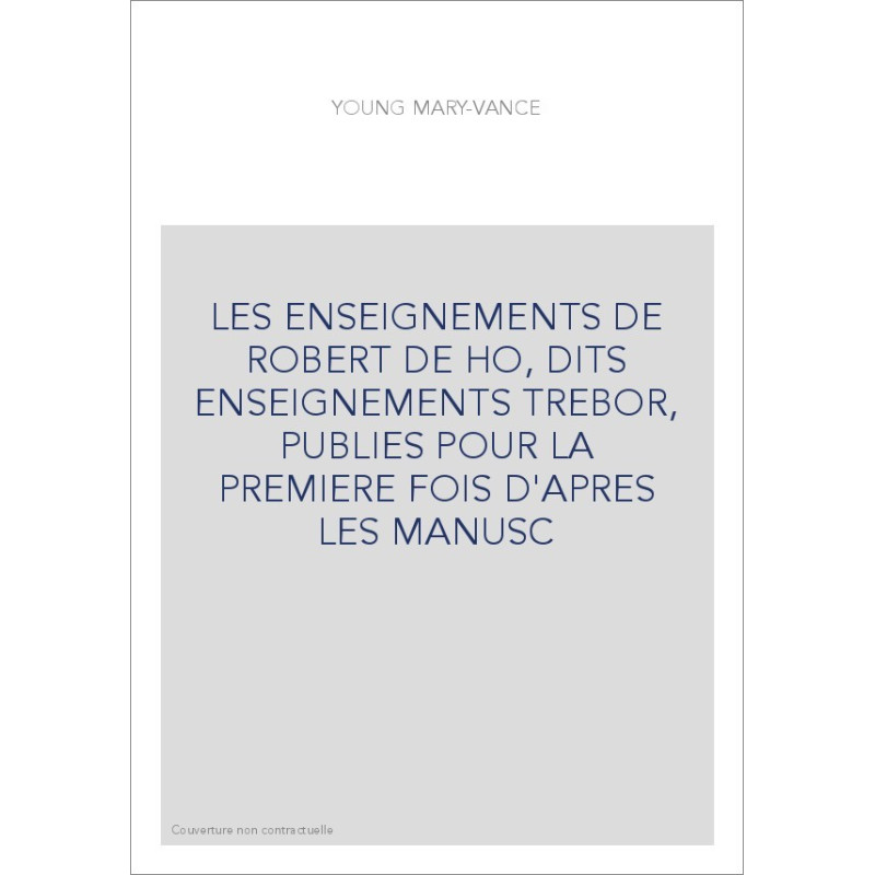 LES ENSEIGNEMENTS DE ROBERT DE HO, DITS ENSEIGNEMENTS TREBOR, PUBLIES POUR LA PREMIERE FOIS D'APRES LES MANUSC
