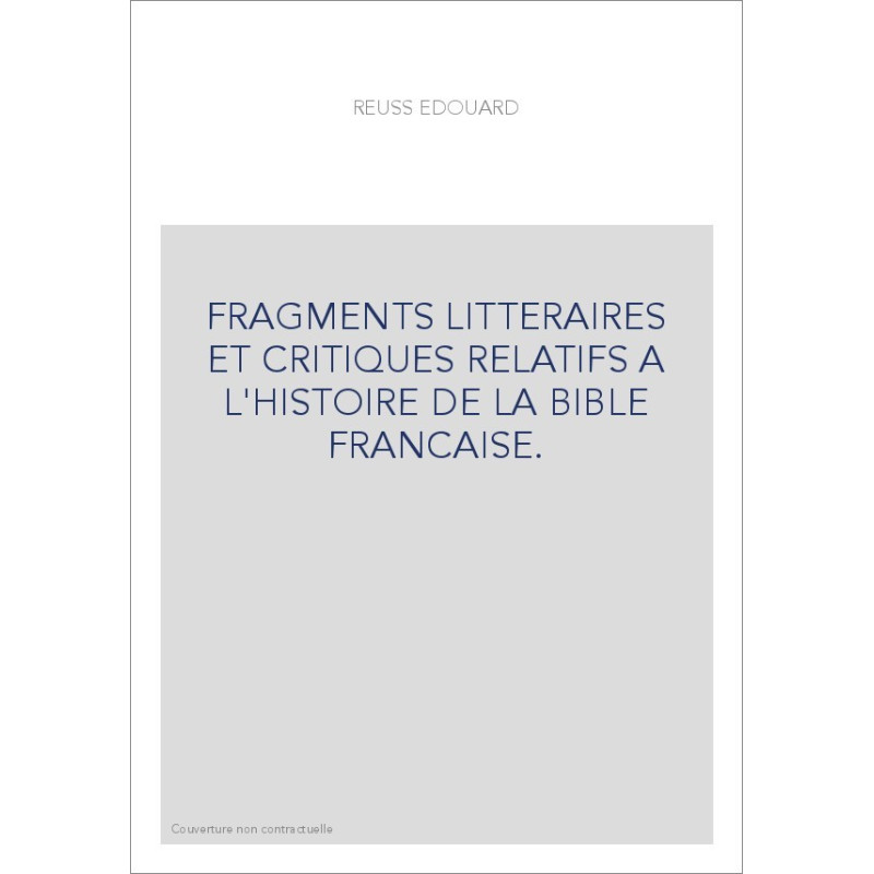 FRAGMENTS LITTERAIRES ET CRITIQUES RELATIFS A L'HISTOIRE DE LA BIBLE FRANCAISE.
