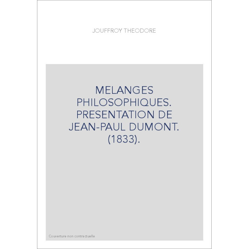 MELANGES PHILOSOPHIQUES. PRESENTATION DE JEAN-PAUL DUMONT. (1833).