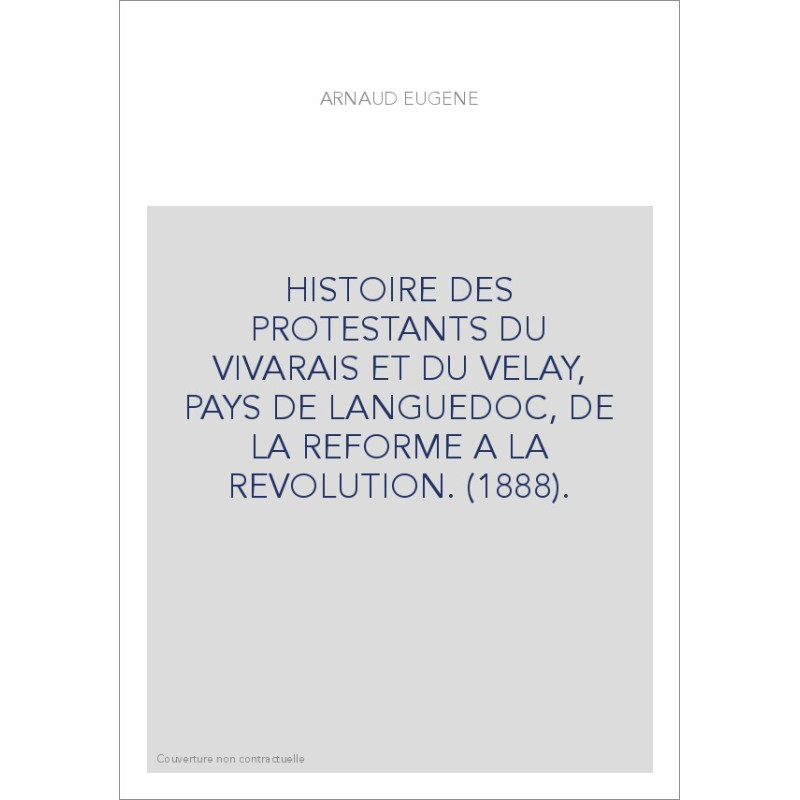 HISTOIRE DES PROTESTANTS DU VIVARAIS ET DU VELAY, PAYS DE LANGUEDOC, DE LA REFORME A LA REVOLUTION. (1888).