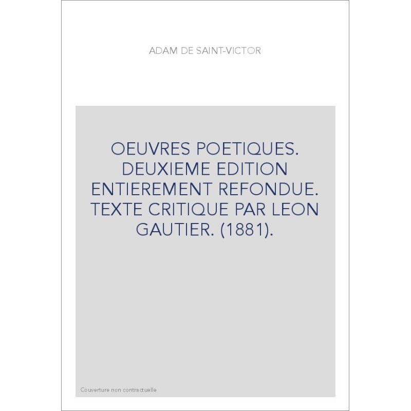 OEUVRES POETIQUES. DEUXIEME EDITION ENTIEREMENT REFONDUE. TEXTE CRITIQUE PAR LEON GAUTIER. (1881).