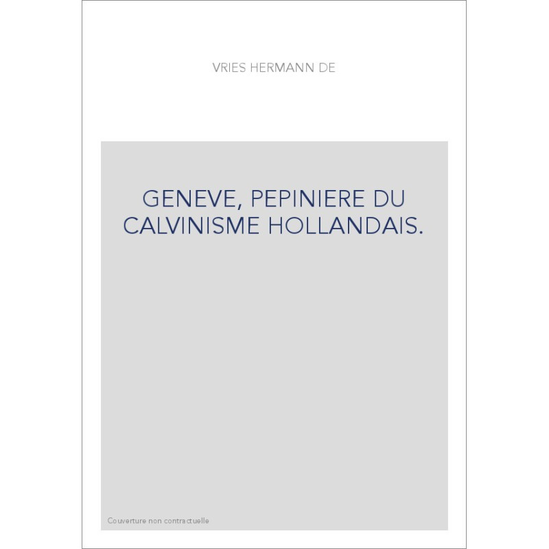 GENEVE, PEPINIERE DU CALVINISME HOLLANDAIS.
