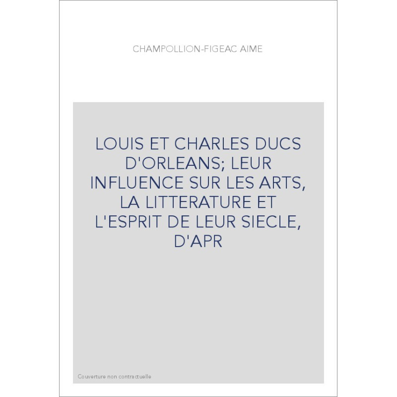 LOUIS ET CHARLES DUCS D'ORLEANS LEUR INFLUENCE SUR LES ARTS, LA LITTERATURE ET L'ESPRIT DE LEUR SIECLE, D'APR